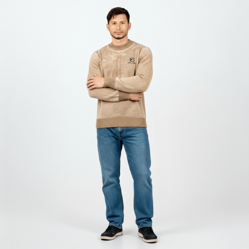 Point Zero Men’s Premium Winter Sweater – Beige | Warm Knitwear | Casual Winter Fashion