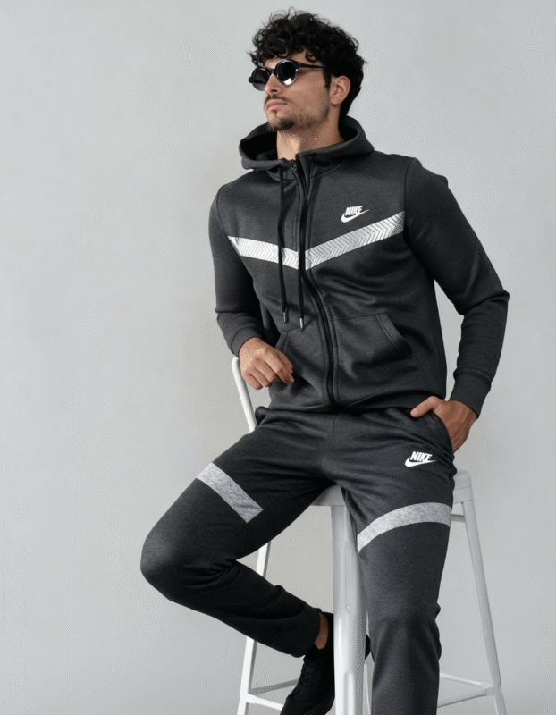 Men’s Premium Sports Tracksuit – Black | 3-Stripe Athletic Wear | Winter Gym & Casual Outfit