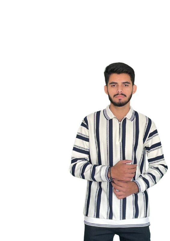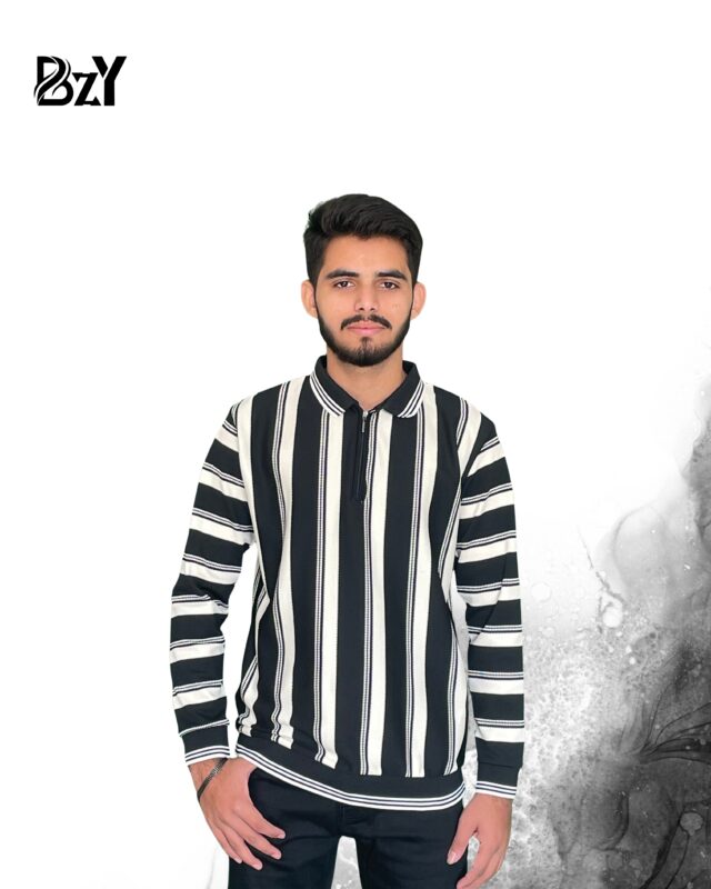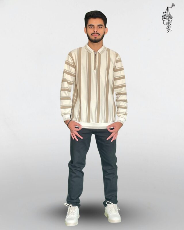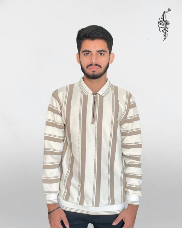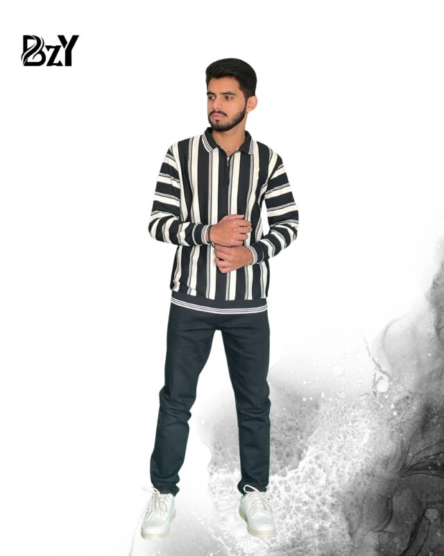 ₨2,900.00Men’s Premium Old Money Striped Zip Collar Sweater – White & Dark Blue | Winter Collection