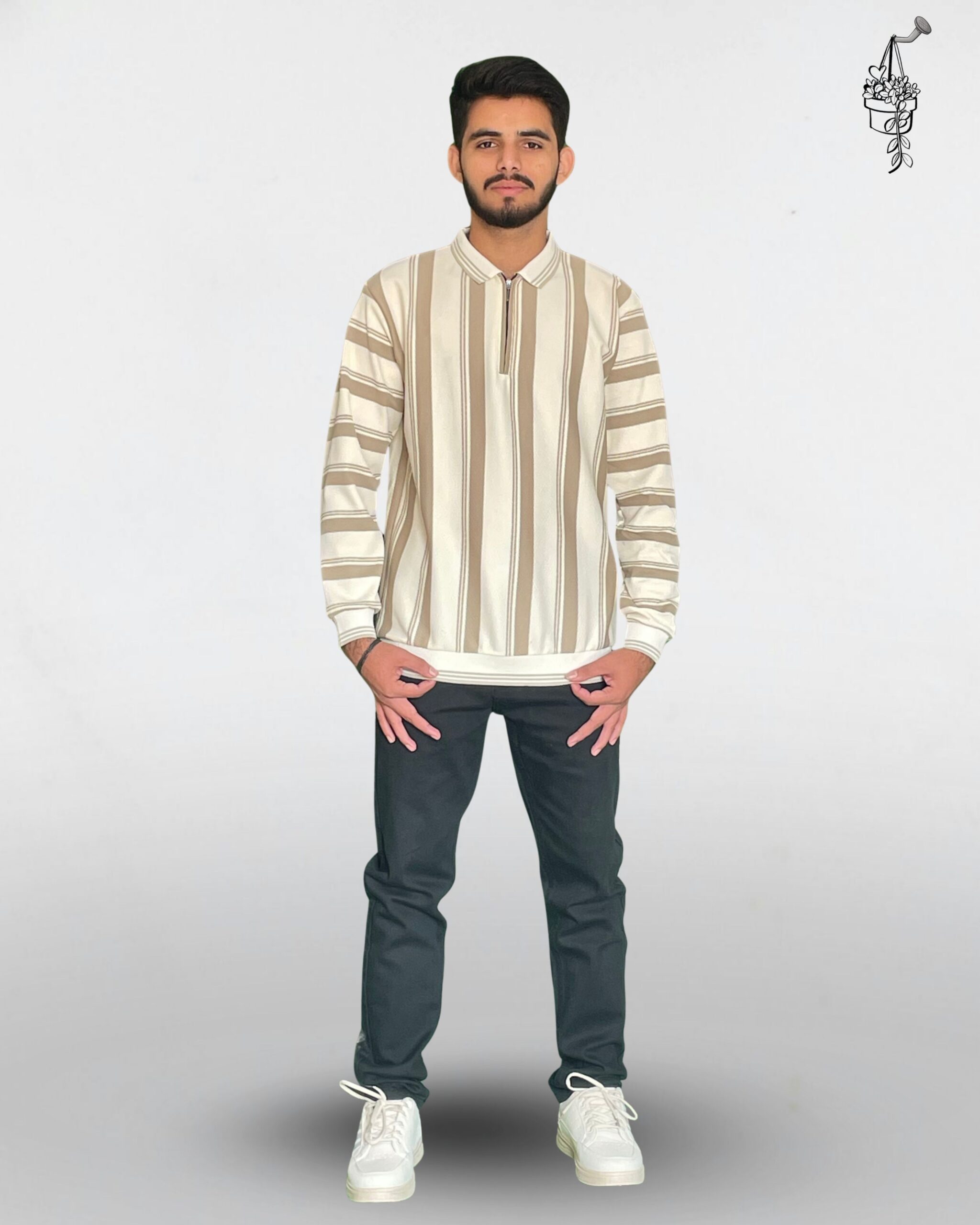 Upgrade your winter style with this premium Old Money striped sweater featuring a classy beige-and-cream color palette and a stylish zip collar. Soft, warm, and perfect for everyday wear or casual outings.