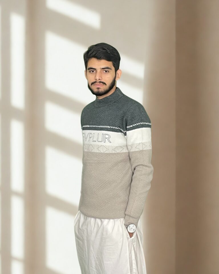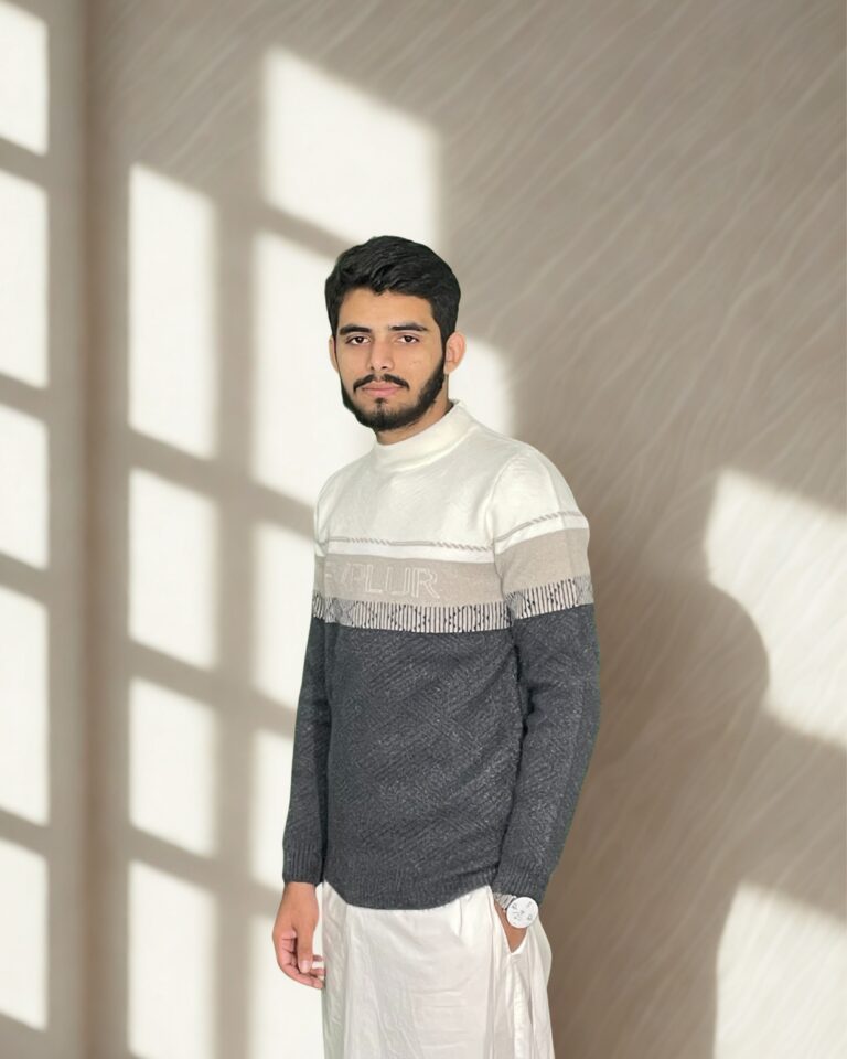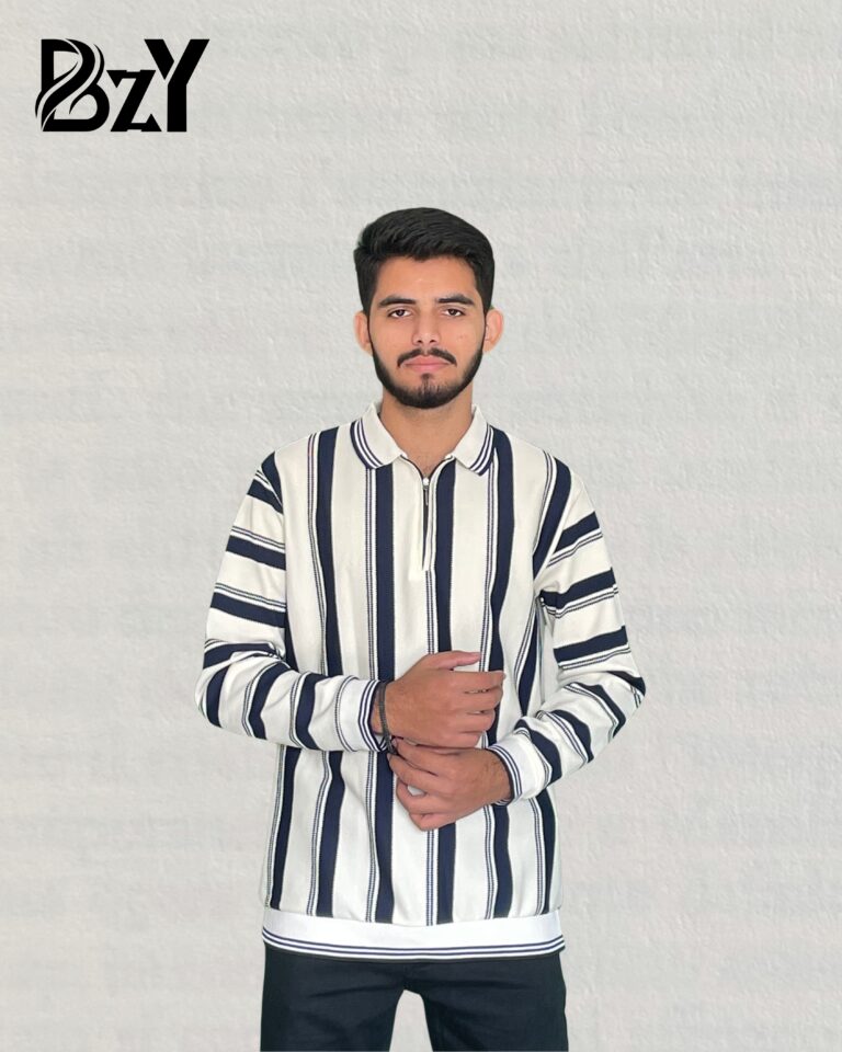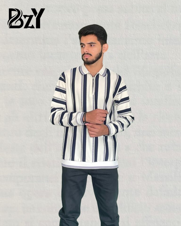 ₨2,900.00Men’s Premium Old Money Striped Zip Collar Sweater – White & Dark Blue | Winter Collection